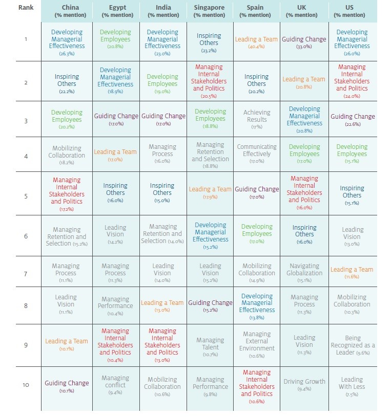 Focusing on the United States, CCL found that developing managerial effectiveness was the most common challenge. This comes down to struggling to develop relevant skills in order to become more effective in their roles. Skills such as time-management, prioritization, strategic thinking, decision-making, staying on top of trends and ever changing requirements of a managerial role, are crucial to setting leaders up for continued success.